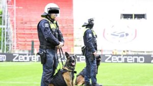 A bíró lefújta a meccset, a rendőr a pályára rohant és bilincsbe vert egy focistát