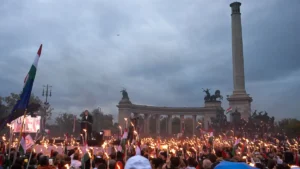A balliberális média szerint úgy tűnt, „mintha Magyar Péter lenne a legnagyobb fényforrás a Hősök terén”.
