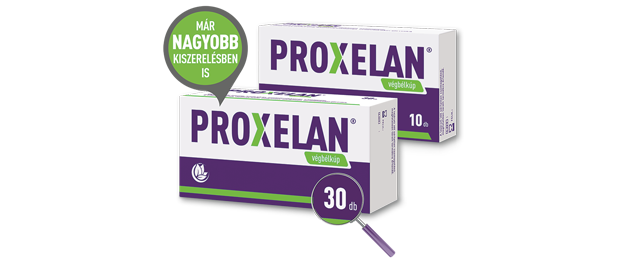 A Proxelan végbélkúp klinikailag igazolt, helyi hatású készítmény, amely hialuronsavat és olyan gyógynövények kivonatát tartalmazza, amelyek közismerten nyugtatják és ápolják a szöveteket. Az összetevők az emésztőrendszert kikerülve, célzottan a probléma forrásánál szabadulnak fel, és segíthetnek a prosztata duzzanatából és feszüléséből származó fájdalom és a vizelési zavar enyhítésében. A Proxelan végbélkúp harmincdarabos kiszerelésben, vény nélkül kapható a patikákban. A 30 napos bevezető kúra után a kezelés bármikor ismételhető és akár tartósan is alkalmazható.