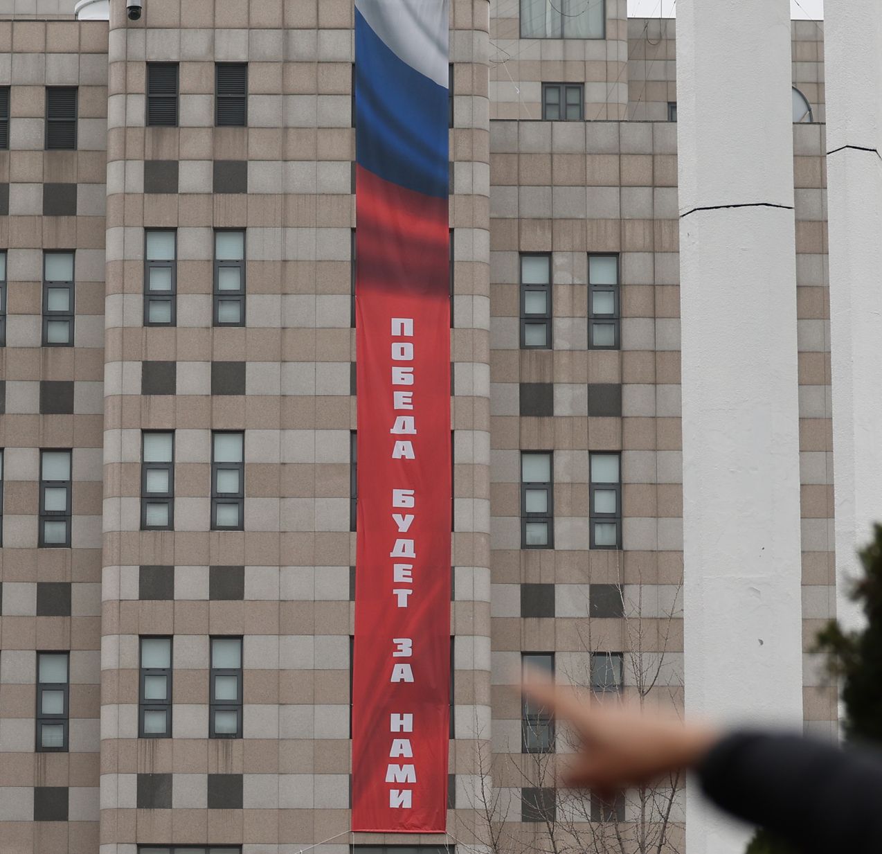 Az orosz-ukrán háború negyedik évfordulója előtt az orosz nagykövetség Szöulban egy olyan transzparenst helyezett ki, amelyen „A győzelem a miénk lesz” felirat olvasható. A nagyjából 15 méteres transzparens az orosz zászló színeiben pompázik.