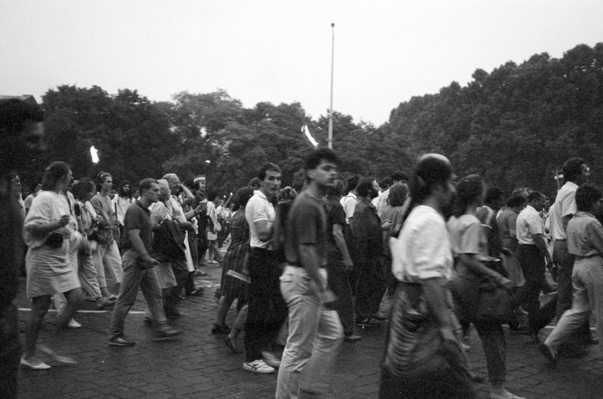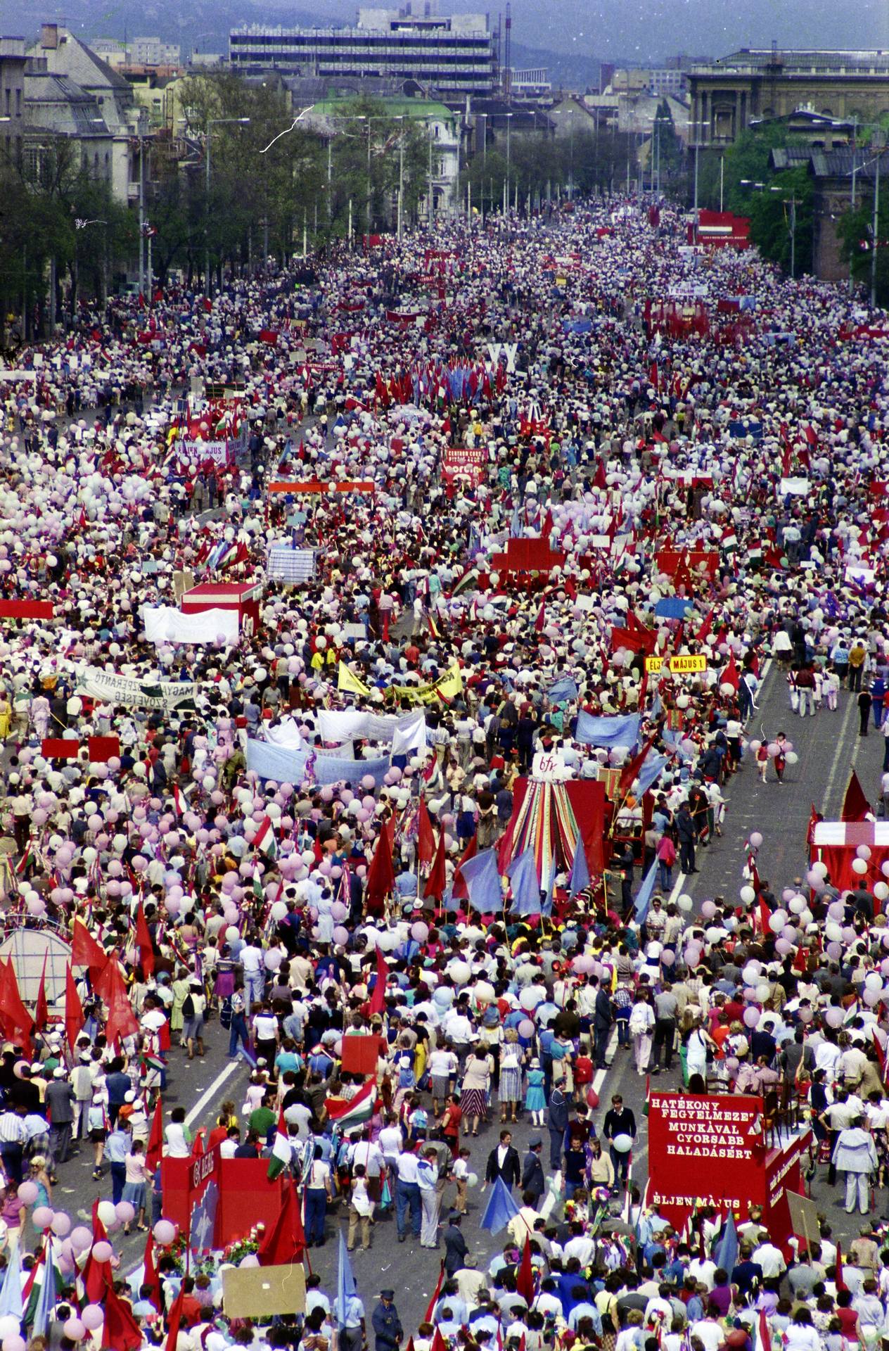 Magyarországon a felvonulások évtizedes, a dísztribünről vezényelt fegyelmezett koreográfiája néhány hónap alatt radikálisan megváltozott: a tér, amely évtizedekig a hatalom előtt való hódolat helyszíne volt, hirtelen a valódi közösségi gyász és követelés színterévé vált. A romániai falurombolás elleni tiltakozáson a tömeg már nem a párt jelszavait skandálta. Igazán más volt fáklyával menni, mint előtte nyuszis lufival ugyanott a majálison – majd pedig Nagy Imre újratemetése már a rendszerváltás szimbolikus pillanata volt, ahol a Hősök tere hat ravatalával és a gyászoló százezrekkel végleg lemosta magáról az április 4-i díszszemlék kényszerű emlékét. Mindenki abban bízott, hogy a Hősök tere végleg visszanyerte méltóságát, és a magyar politika ütemét többé nem távoli birodalmi központokban határozzák meg.