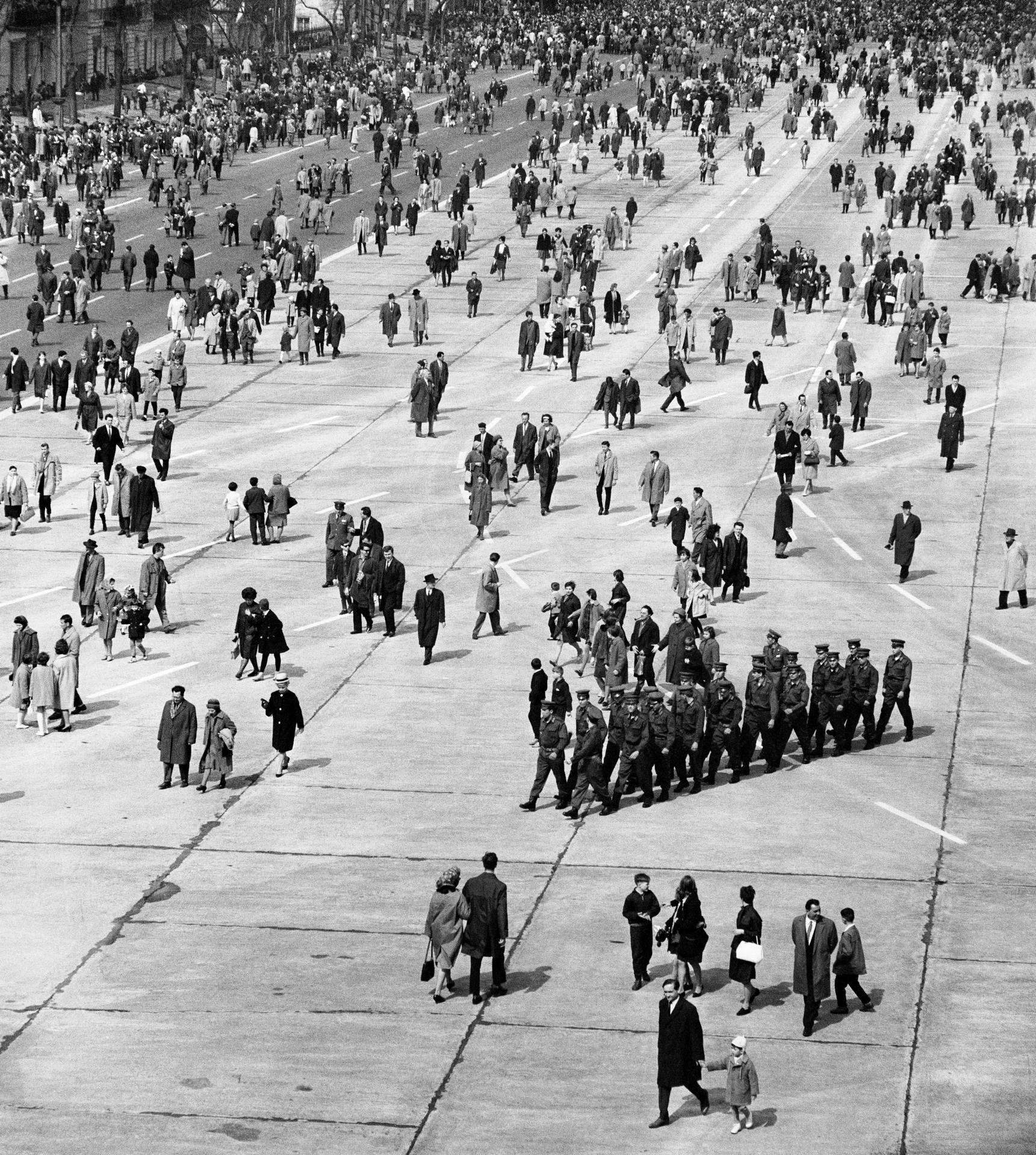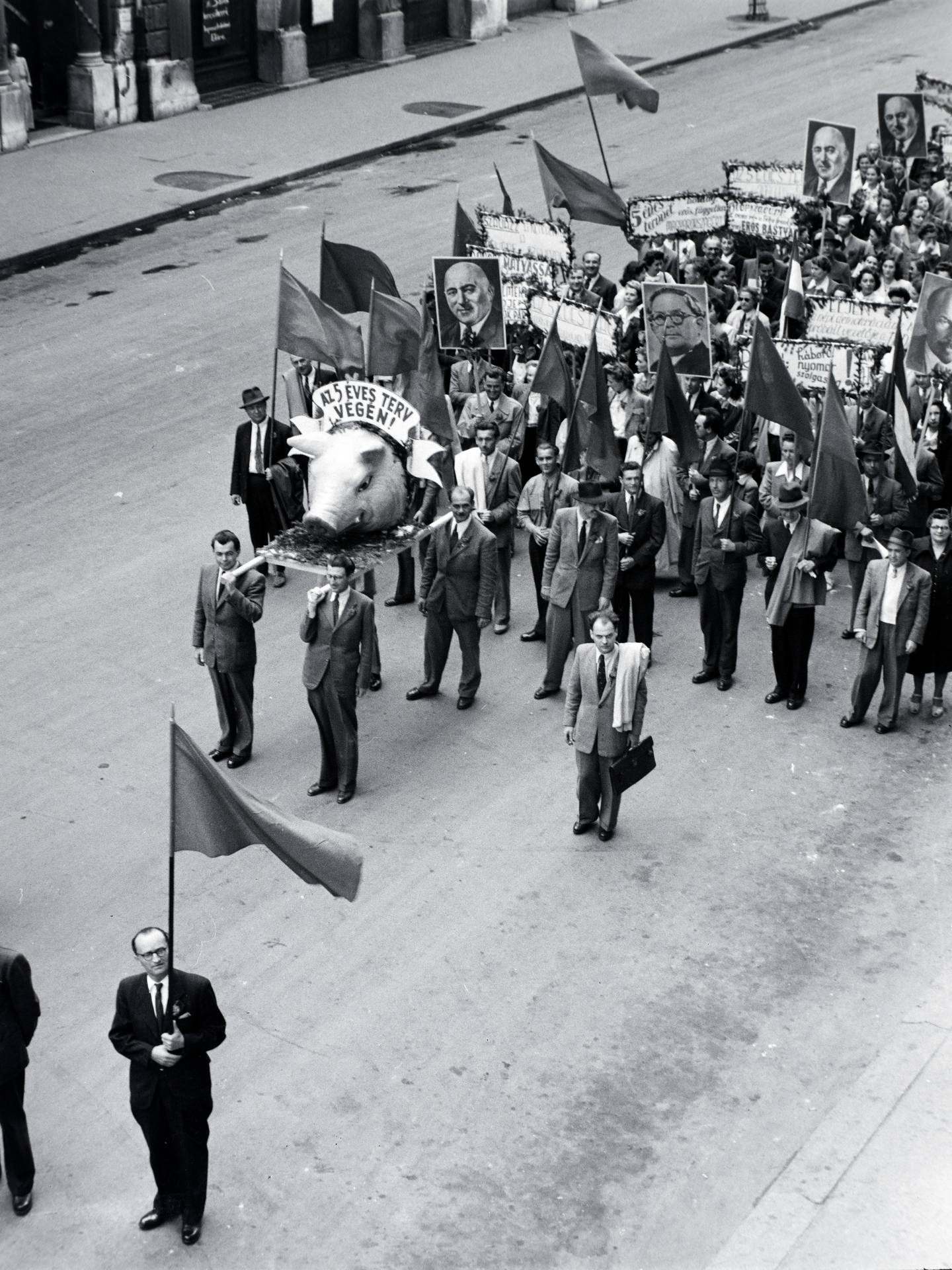 Ezt a korszak grandiózus politikai színházai, a Hősök tere monumentális díszletei és a Felvonulási tér szimbolikus tereiben megtartott tömegrendezvények cikkünket illusztráló képei mellett most egymásra csúszó kerek évfordulók is szépen szemléltetik. Február 25. nemcsak a kommunizmus áldozatainak emléknapja Magyarországon (a kisgazda Kovács Bélát ekkor hurcolták el 1947-ben a Szovjetunióba, hogy testileg-lelkileg szétvert emberként térjen vissza nyolc évvel később), de ekkor hangzott el két történelmi hatású beszéd is harminc év különbséggel: a XX. kongresszuson Hruscsov korszakváltást jelző támadása a sztálinizmus ellen 1956-ban, majd az utolsó pártfőtitkár Gorbacsov peresztrojkát meghirdető beszéde ’86-ban – hetven és negyven évvel ezelőtt.