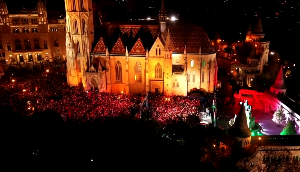 Ezt a párhuzamot nézve mennyi emberre számított a Fidesz a kampányzáróján, ha a budapesti Szentháromság térre egy kivetítőt sem tettek, és a színpadra néhány méterről egyáltalán nem lehetett rálátni? Még azok is csak a színpad tetején lévő lámpákat látták, akik felálltak a Szentháromság-szobor talapzatára. A hangosítás sem volt rendben, a tér bal oldalán, a szobor mögötti részen nagyon kellett figyelni, hogy minden szót lehessen érteni.