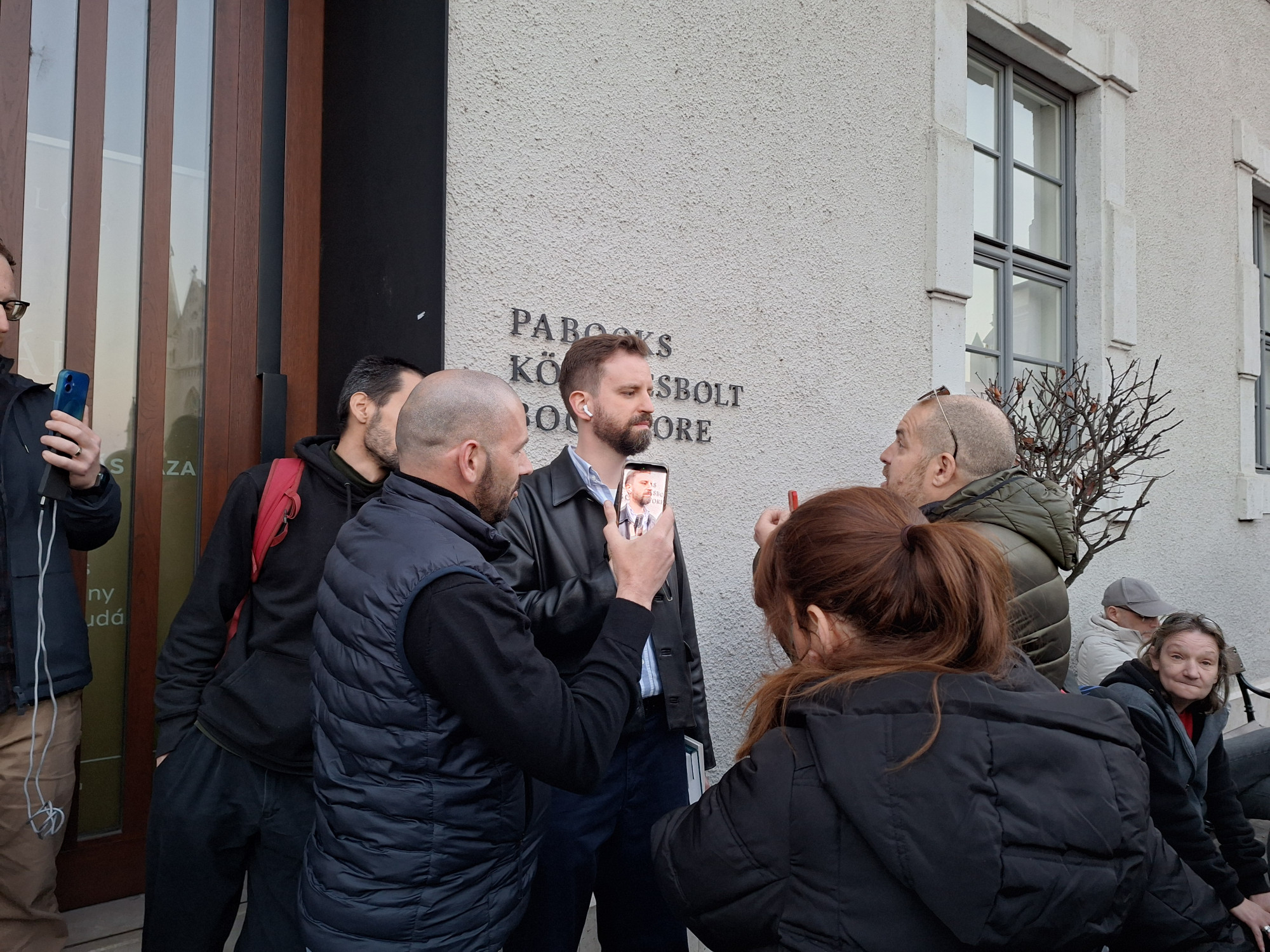 Nem volt nálam kamera, így nem menekült el fejére húzott kapucnival – egyáltalán, nem is kapucnis kabátban jött, mint korábban –, meghallgatta a kérdést, hogy kinek a megbízásából vagy felkérésére vannak itt, majd közölte, hogy nem nyilatkozik.