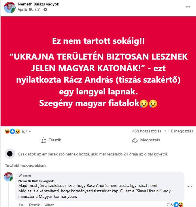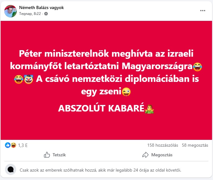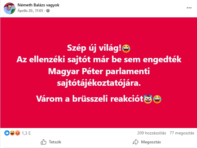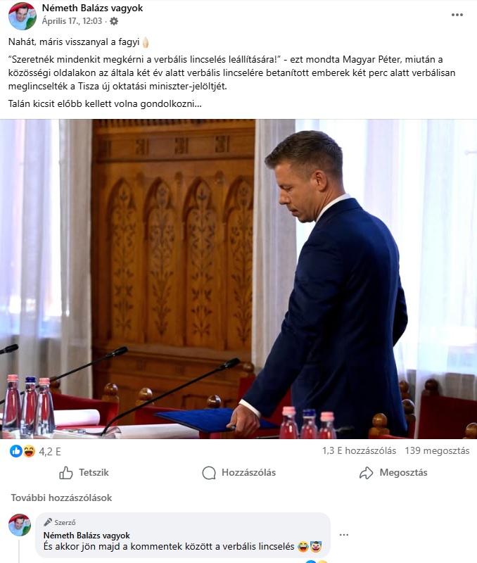 Cikkünk megjelenése után Németh Balázs ezt posztolta: