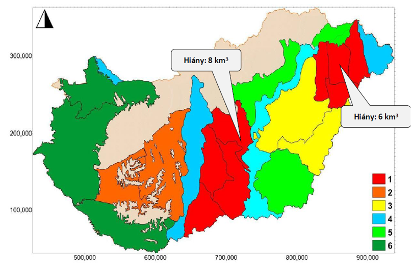 A bevezetéseket és a vízhasználatokat beleszámítva a talajvíz deficit éves mértéke 0,6 km3”. Az alábbi ábrából az is kiderül, hogy ezek alapján az ország legszárazabb régióiban 6-8 km3 víz is hiányzik a talajból.