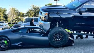 Véletlenül áthajtott a terepjáró vezetője egy különleges Lamborginin + videó