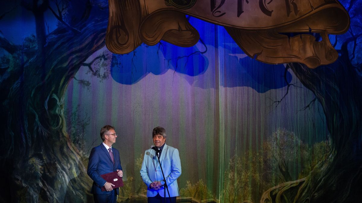 A régi-új igazgató kinevezési oklevelét Hankó Balázs kultúráért és innovációért felelős miniszter vasárnap adta át a Shrek, a Musical című előadás megtekintése előtt a színpadon.