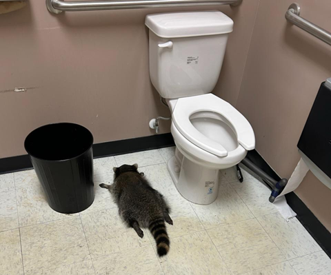 Betört az italboltba, széttörte és megitta az alsó polcos whiskyket, majd kidőlt a vécében a virginiai mosómedve