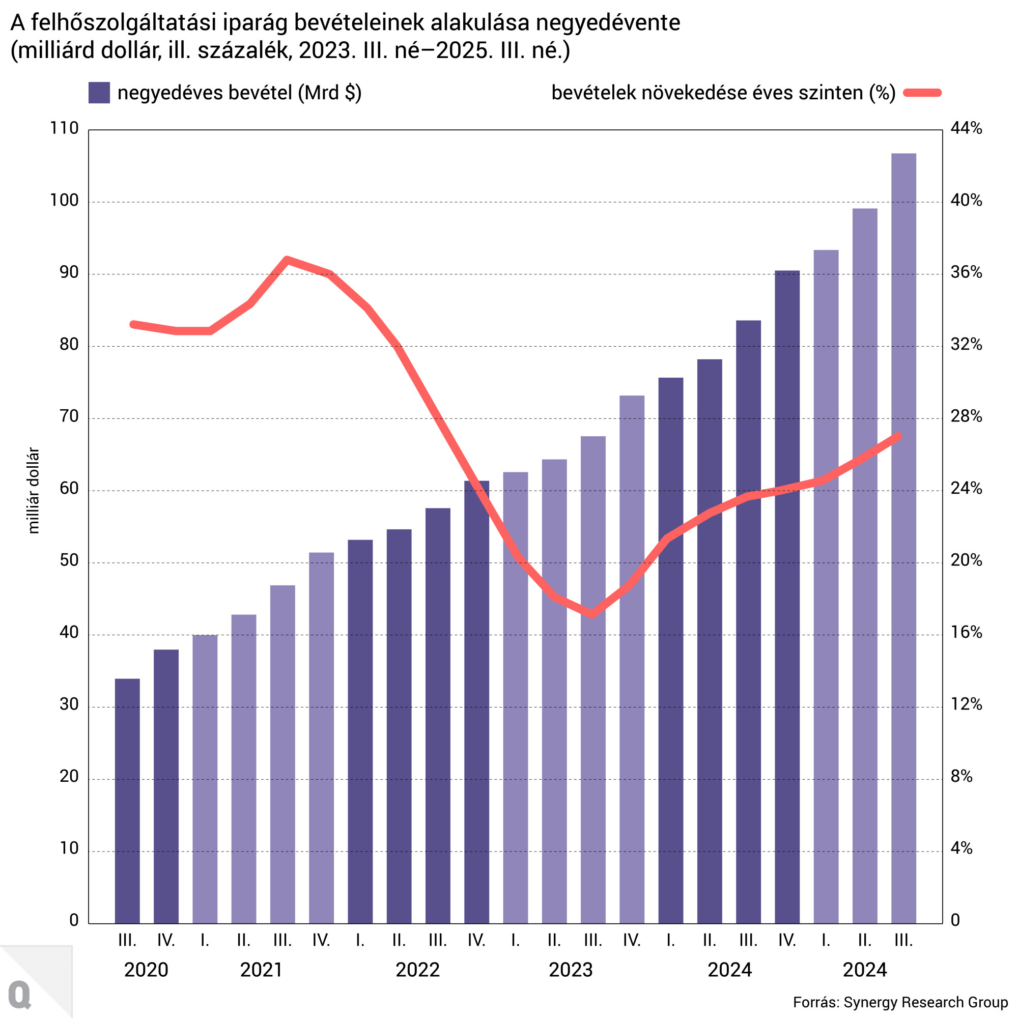 Tehát ahhoz, hogy a Netflixen filmezni tudjunk, vagy a Spotify-on zenét hallgatni, ezeknek a cégeknek le kellett szerződniük egy felhőszolgáltatóval, ami általában egy olyan nagy techcéget jelent, amelynek rengeteg adatközpontja van. A Netflix például a felhőpiac közel egyharmadát uraló Amazon szervereit (AWS) használja, hogy előfizetői bármikor elő tudják hívni a filmeket és sorozatokat, míg a Spotify az AWS mellett a Google Cloudra is támaszkodik. Fontos szereplő még a Microsoft, amelynek Azure felhőjét főként vállalatok használják, a Windows, Office és más belső termékek kiszolgálásán túl. Ahogy azt az AI híradó friss részében is tárgyaltuk, ezek már dollár-százmilliárdokban mérhető jövedelmet jelentenek a legnagyobb cégeknek, a Microsoftnak például már a felhő a legnagyobb bevételi forrása.