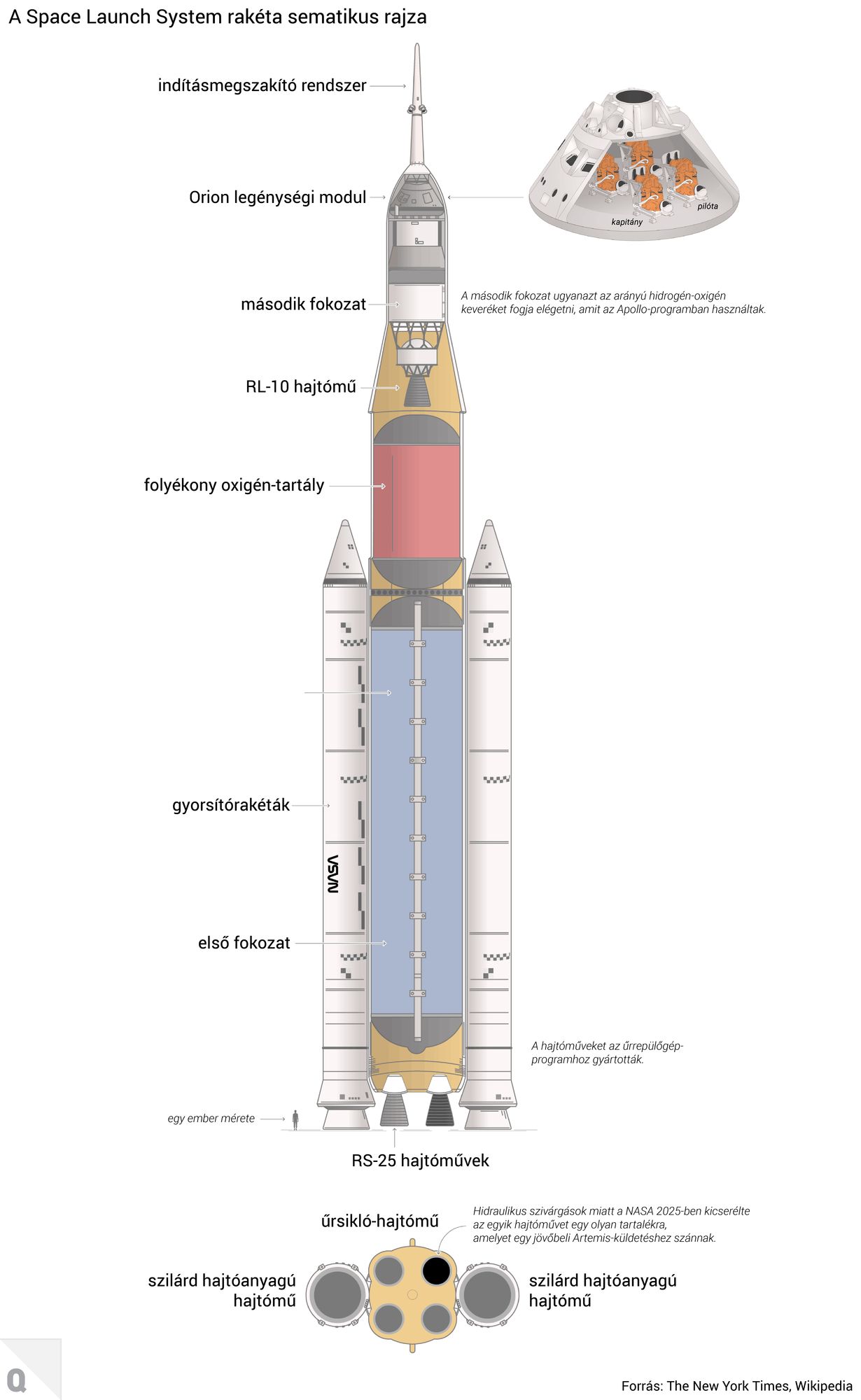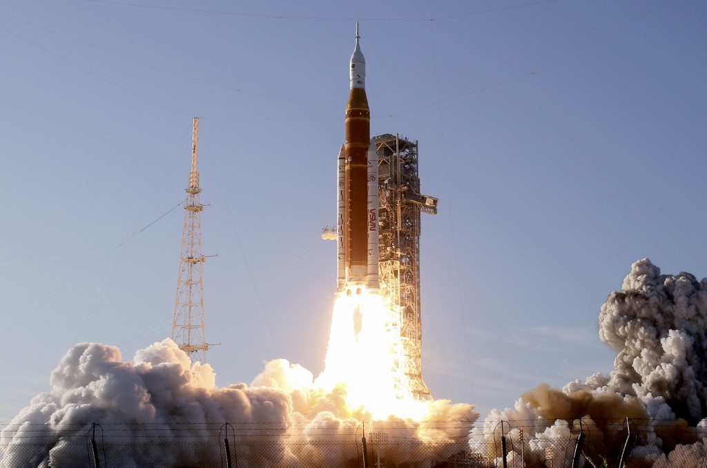 A négyfős legénység egy 98 méter magas, több mint 2600 tonnás rakétával indult útnak. A SpaceX vagy a Blue Origin rakétáival szemben nem újrahasználható Space Launch System, ahogy korábbi cikkünkben bemutattuk, az űrrepülőgép-program örökségére épül, és fejlesztését jelentős költségtúllépések, csúszások övezték.