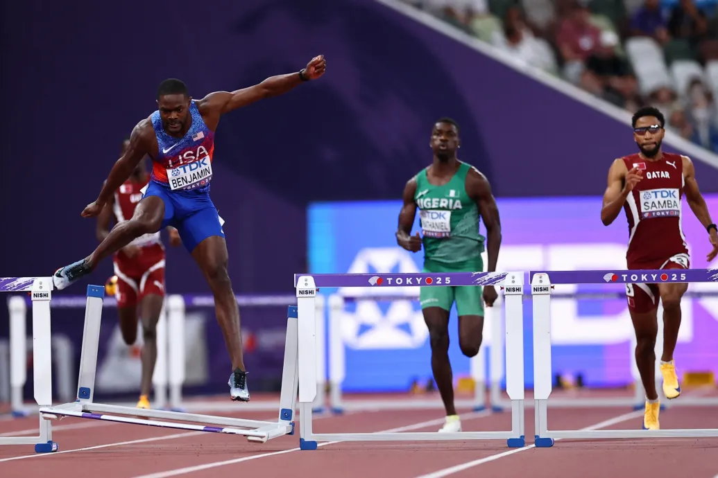 Az amerikai Benjamin lerúgta az utolsó gátat, amely a szomszéd pálya gátját is elmozdította. Az első döntés szerint ez akadályozta az ellenfelét.