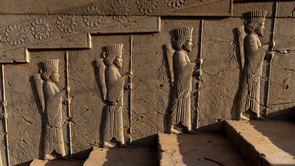 Saeid Arabzadeh / Middle East Images / Middle East Images / AFP Halhatatlanok egykorú ábrázolása egy perszepoliszi palota domborművén.