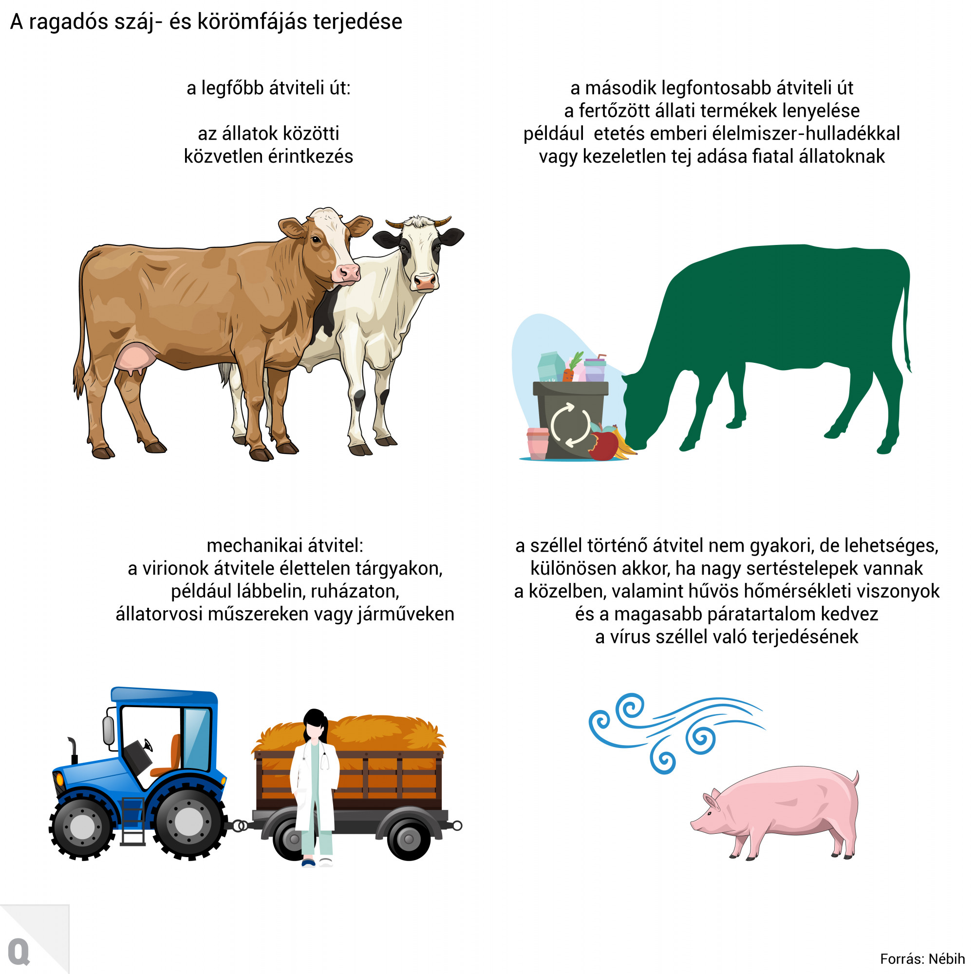 A ragadós száj- és körömfájás nevében benne van, hogy miért különösen veszélyes, nemcsak az érintett gazdaságokra, de a gazdaság egészére nézve: ragadós, vagyis rendkívül fertőzőképes. Bár emberekre nem veszélyes, és az állatok többségére sem jelent halálos fenyegetést (a fiatal állatokat kivéve), elképesztő szenvedést okoz a fertőzött patásoknak, emellett nagyon könnyen terjed: a vírus a széllel akár 30 kilométerre is eljuthat, de a gondozók ruháján, cipőjén vagy haján is könnyen bekerülhet egy telepre, ahol villámgyorsan végigszaladhat az egymással érintkező állatokon.