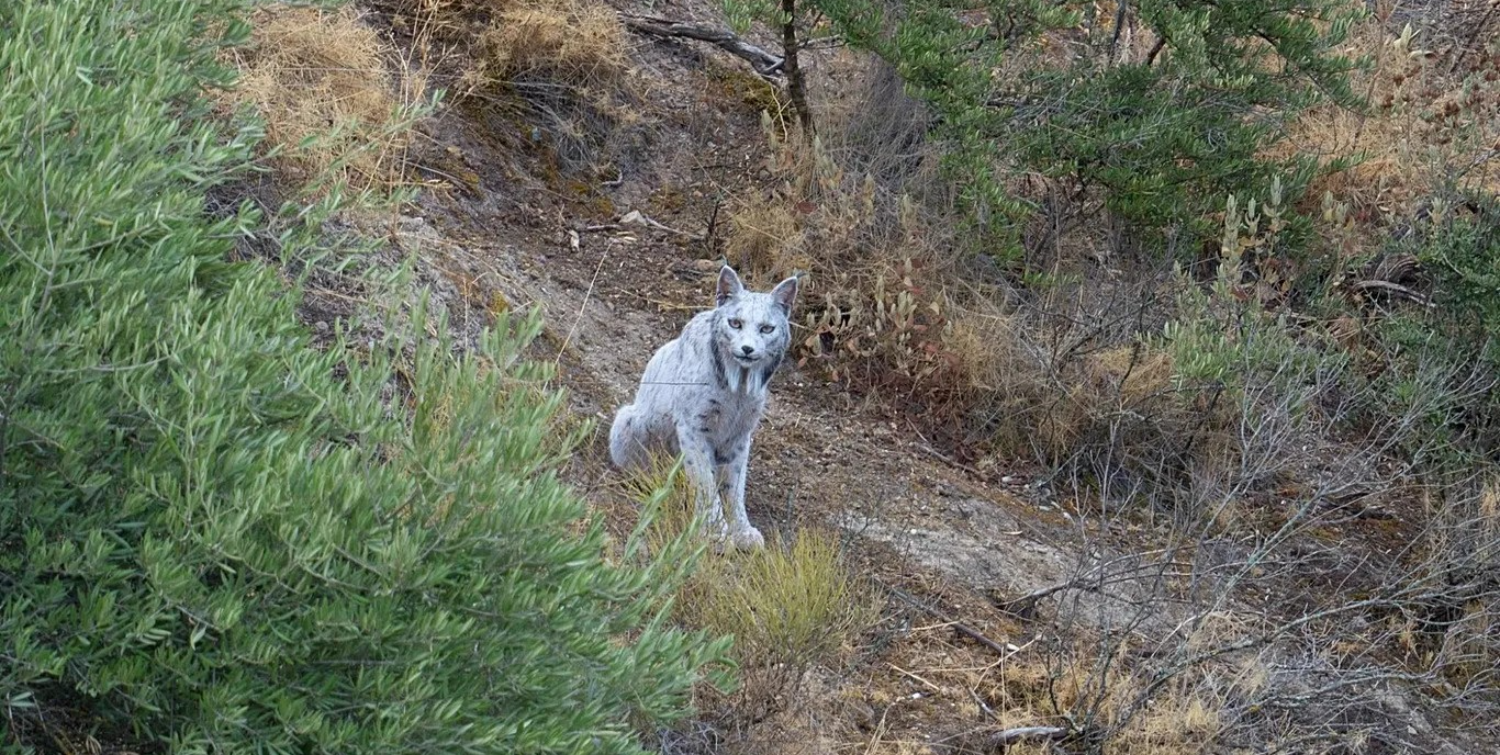Az állat persze még így is ritkának számít, a fehér változata pedig még inkább: Ángel Hidalgo spanyol természetfotós az első, aki felvételt készített róla, bár Andalúziában állítólag nemzedékek óta szólnak történetek a hegyek szelleméről, a fehér vadmacskáról. A Jaén tartomány hegyeiben lefotózott példány fehér, de nem albínó: egy ritka genetikai mutáció, a leucizmus miatt csak részben hiányoznak a szervezetéből a pigmenttestek, így a szeme nem vörös, hanem sárga maradt. A kutatók szerint az, hogy egyáltalán megjelenhetett ez az anomália a vadon élő hiúzok között, már magában is a visszatelepítési program sikeréről árulkodik. Az észlelés pontos helyét az állat védelme érdekében a hatóságok titokban tartják.