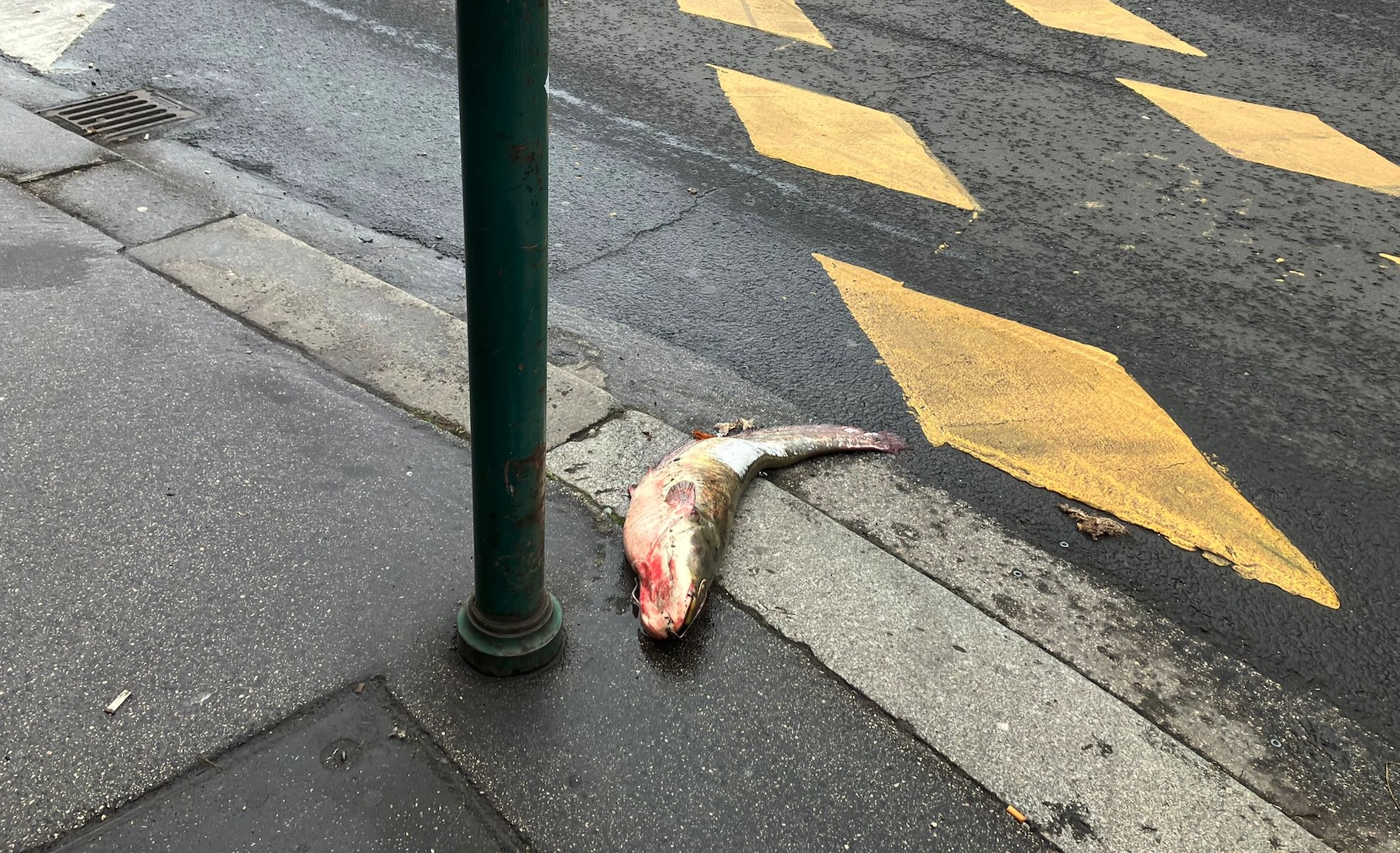 Termetes harcsát fotóztam hétfőn kora délután Budapesten, a Bajcsy-Zsilinszky út és az Andrássy út kereszteződésében.