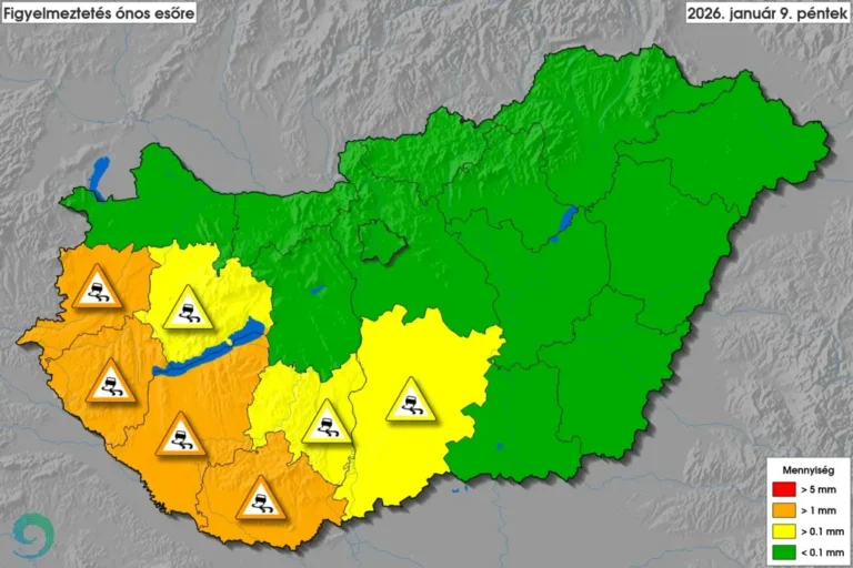 Másodfokú riasztást adtak ki több vármegyére a délnyugati országrészben. A csapadékzóna északi, északkeleti peremén inkább havazás