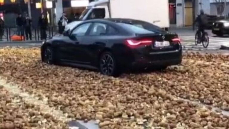 Kiömlött a krumpli az utcára, a vagánykodó BMW-s azt hitte, ez nem lehet akadály számára + videó