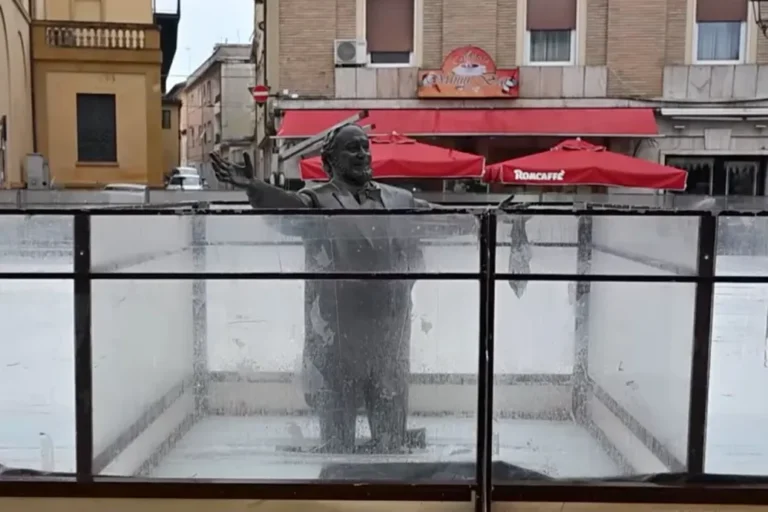 Az olasz kisváros főterén állt Pavarotti szobra, de ez nem zavarta az oda korcsolyapályát építőket