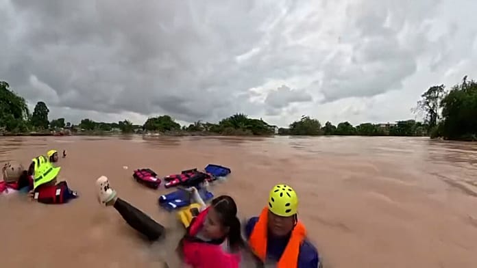 Felvételek mutatják, ahogy mentőcsónak elsüllyed a thaiföldi halálos áradások közepette