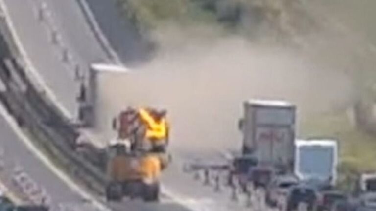 Elbambult a kamionos az M1-esen, hatalmas pusztítást végzett a járművével + videó