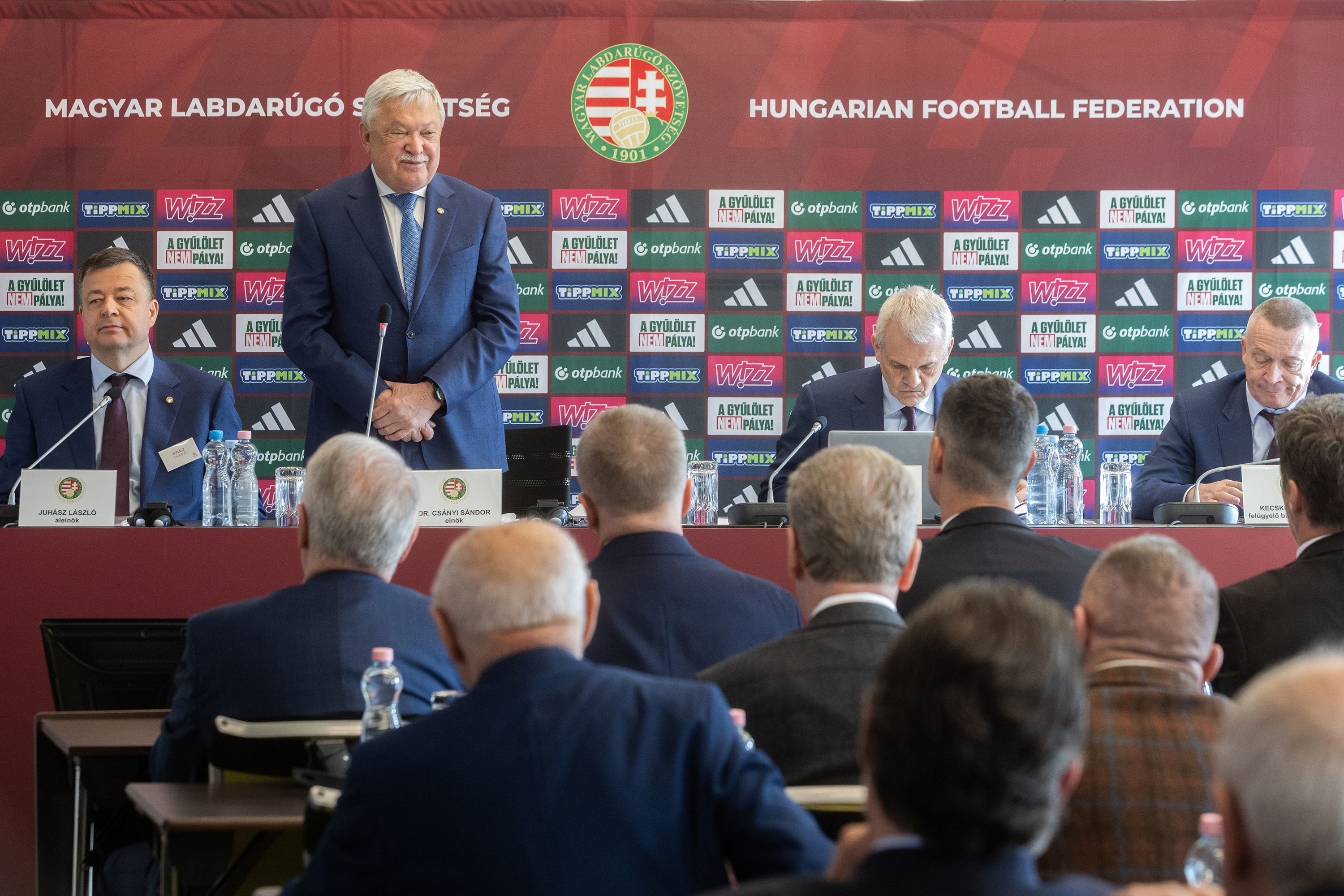 Kocsis Zoltán / MTI Csányi Sándor az MLSZ közgyűlésén a telki Globall Football Park & Sporthotelben 2026. március 20-án.