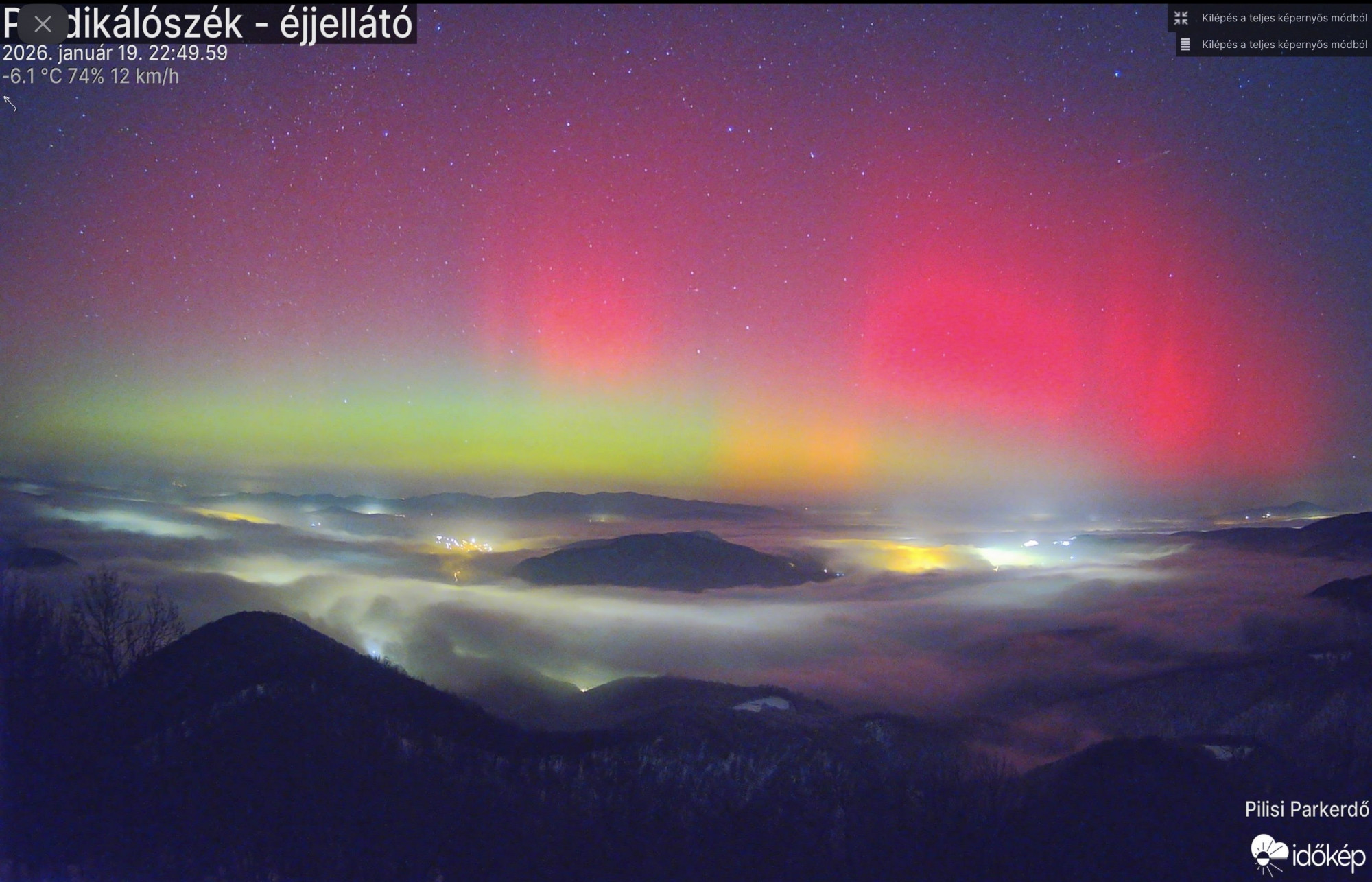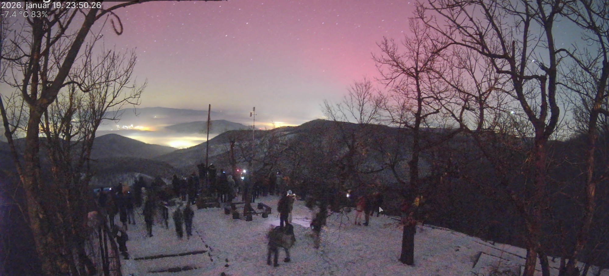 A jelenséget éjfél körül több tucatnyian követték figyelemmel Dobogókőről a mínusz 7 fokos hideg ellenére, miközben az Időkép északra néző webkameráján vörös és zöld fényekben pompázott mögöttük az ég.