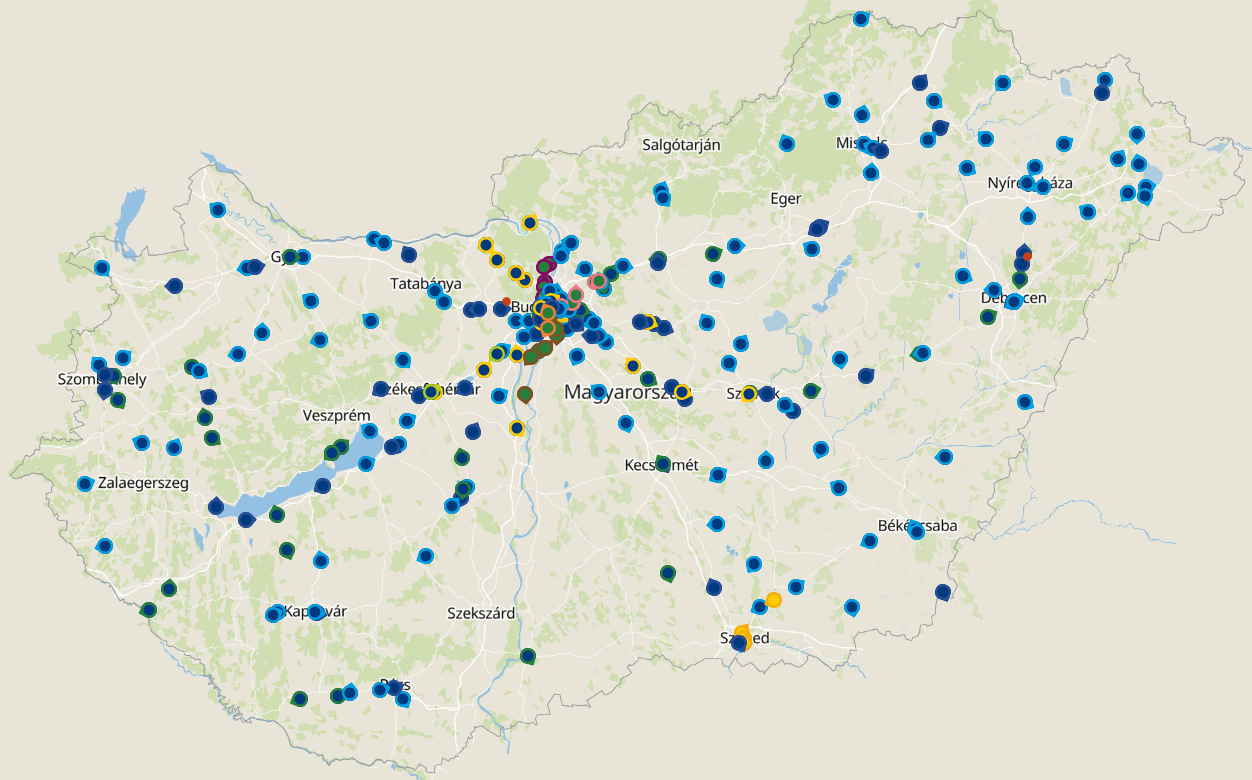 Az új térkép abban különbözik a Vonatinfótól, hogy a színek nem a késést, hanem a vonat típusát jelentik. Az InterCityk sötétkék, az InterRégiók és sebesvonatok zöld, a személyvonatok világoskék, a zónázók sárga szegélyű kék körben jelennek meg. A HÉV-ek színes szegélyű, zöld körben, a Szeged és Hódmezővásárhely között közlekedő TramTrainek sárga szegélyű sárga körben látszódnak.