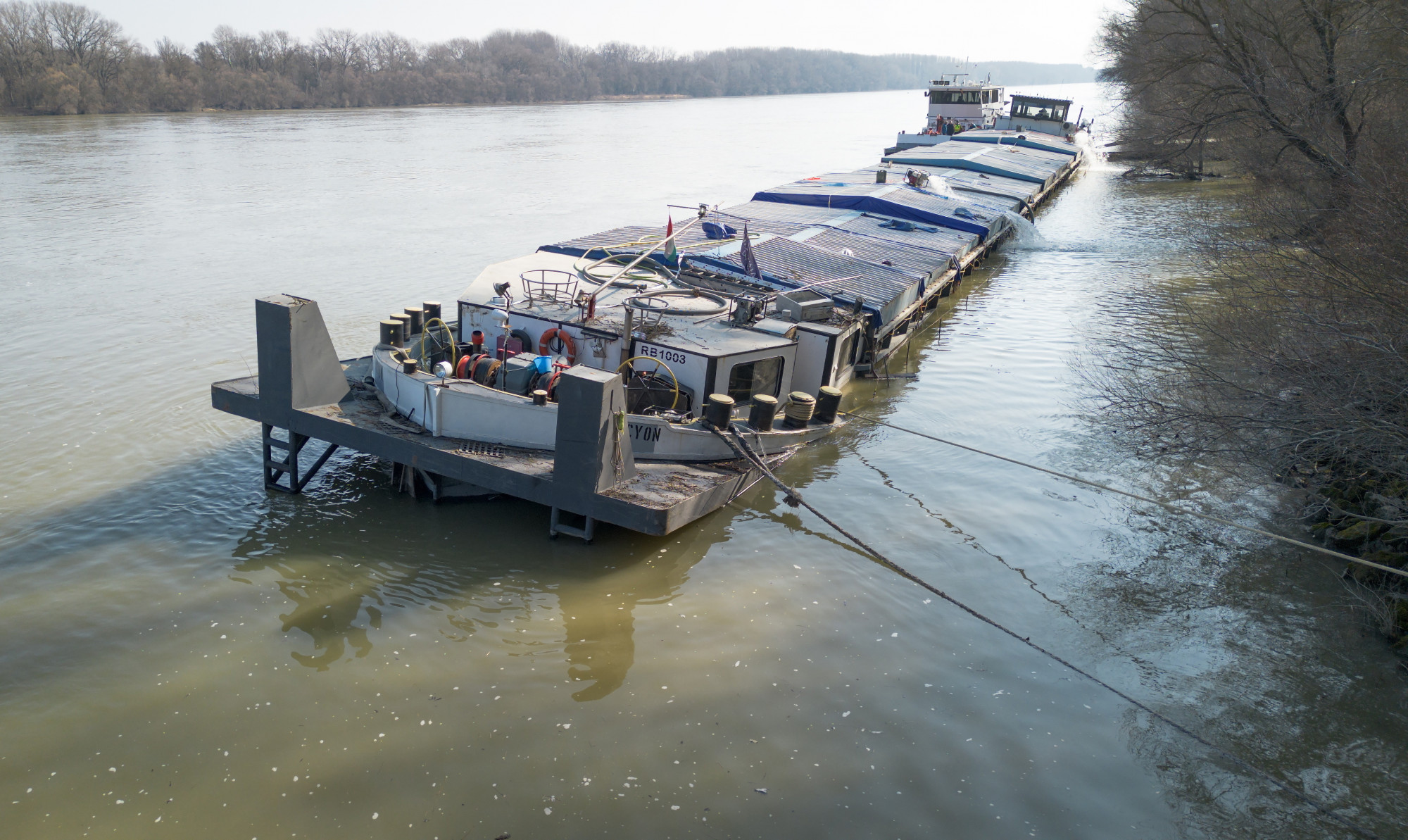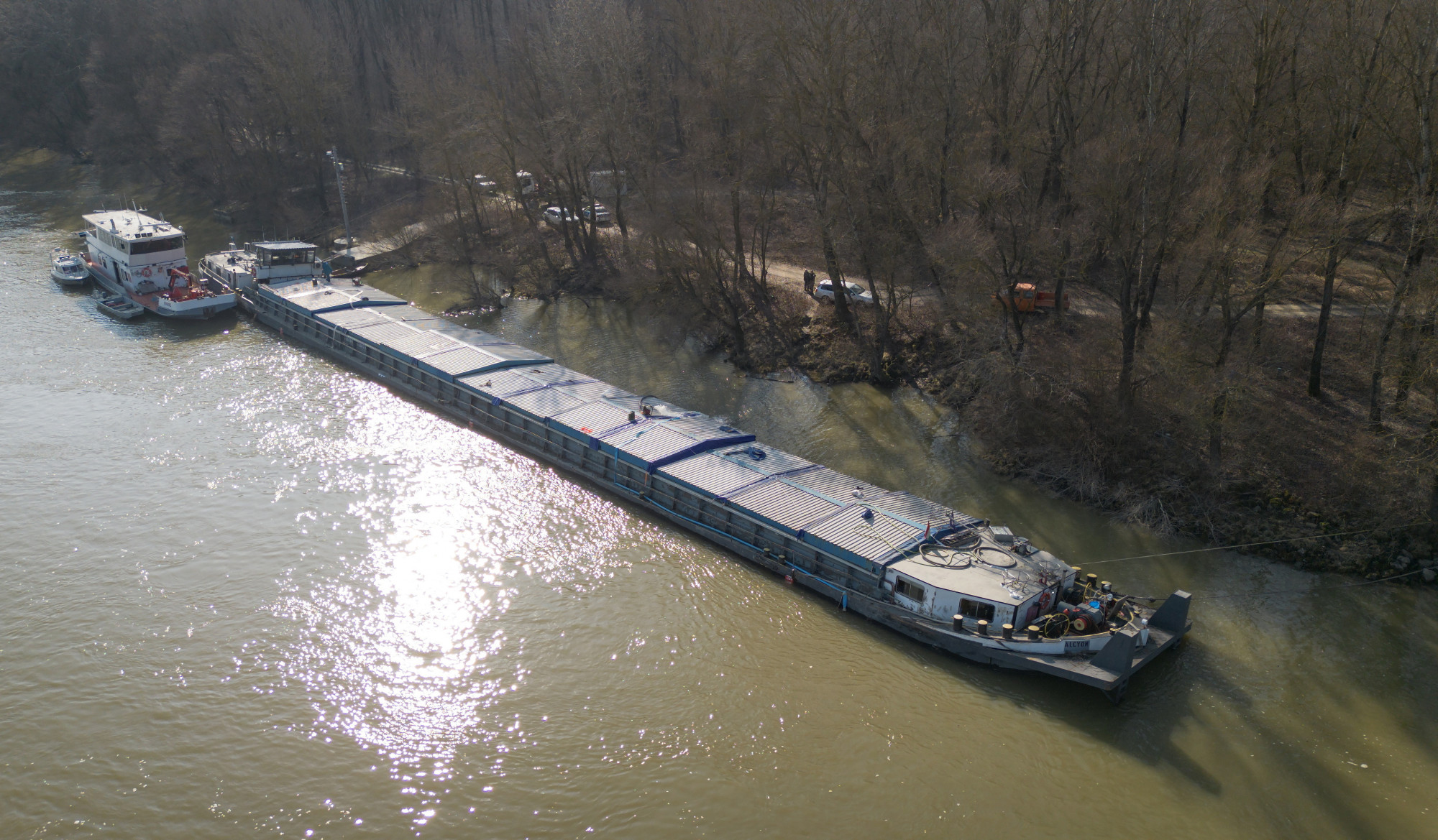 Pénteken és szombaton is közösen szivattyúzták a vizet a hajótestől, amit sikerült stabilizálni, azonban a rakományt egy várhatóan a jövő héten érkező másik uszályra kell átrakodni. Az uszályon tartózkodó három ember közül senki sem sérült meg, a hajó üzemanyagtartálya sem rongálódott meg. (MTI)