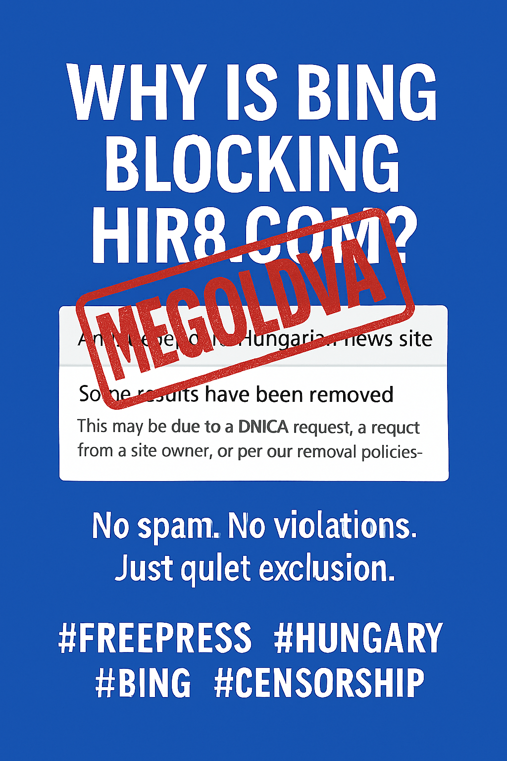 Felmerül a kérdés: Miért vesz részt a Bing a független politikai szerepvállalás korlátozásában? Miért jelennek meg a nagy hazai online lapok – amelyek gyakran kormányzati narratívát közvetítenek – míg a hir8.com teljesen láthatatlanná válik? Ki fél és miért fél egy feltörekvő, valóban független gondolkodó hangtól? És kinek vannak mindehhez technikai eszközei, gazdasági és politikai lehetősége?