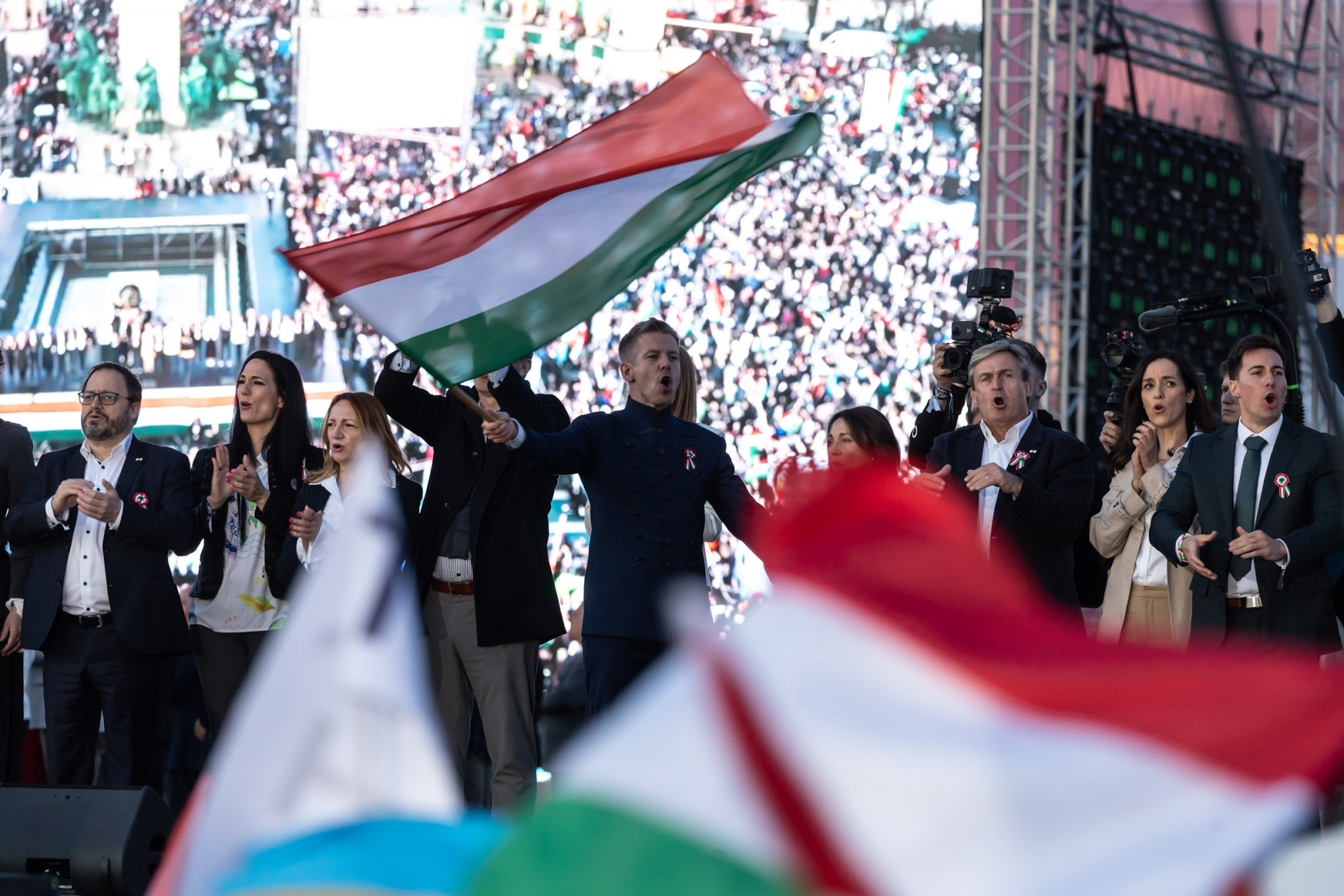 A Tisza rendezvénye hat után ért véget, előtte mind a 106 egyéni jelölt felállt a színpadra, hogy a tömeg ünnepelhesse őket. Nem csak a tömeg méretéről szólnak majd a következő napok, a propaganda rögtön rárepült arra is, hogy ukrán zászlót feszítettek ki a tiszás meneten. Egy olvasónk videóra vette az akciót, leírása alapján tervezett provokáció történhetett, és néhányan direkt azért feszíthették ki a zászlót, hogy arról jól felhasználható képek készülhessenek.
