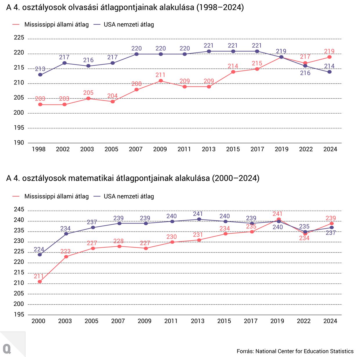 Kisebb csodát hajtott végre az elmúlt évtizedekben az oktatás területén az USA legszegényebb állama, Mississippi. A sikertörténet, amiről április elején a New York Times podcastje is beszámolt, ráadásul az amerikai oktatás válságának kellős közepén történt meg és történik. Miközben az Egyesült Államok nagy részén romlanak az olvasási és matematikai eredmények az iskolákban, Mississippi hatalmas fordulatot hajtott végre, és 2024-re az USA átlaga fölé tornázta fel a diákok eredményeit. A szegénységgel küzdő állam stratégiája jó példa lehet a magyar oktatási rendszer előtt álló kihívások megoldásához is.