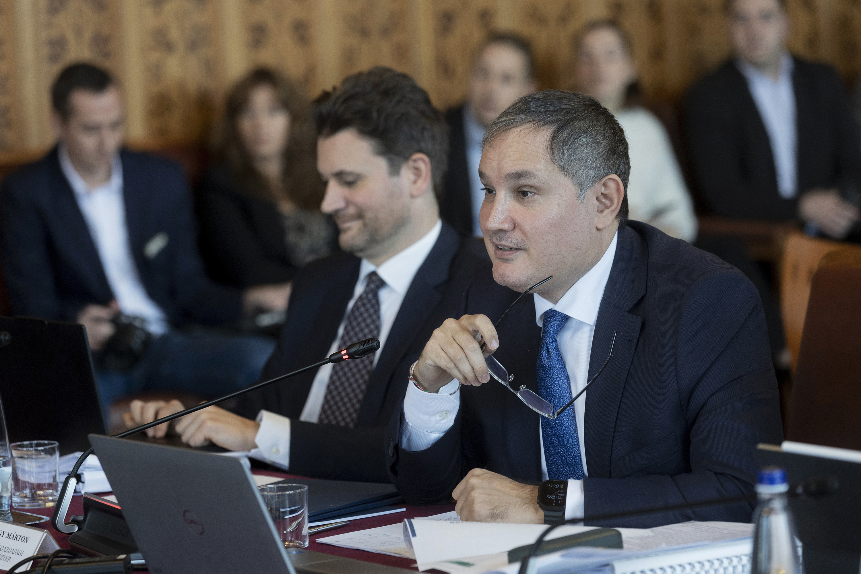 Kocsis Zoltán / MTI Nagy Márton nemzetgazdasági miniszter a költségvetési bizottsági meghallgatásán az Országház Széll Kálmán termében 2025. december 1-jén.