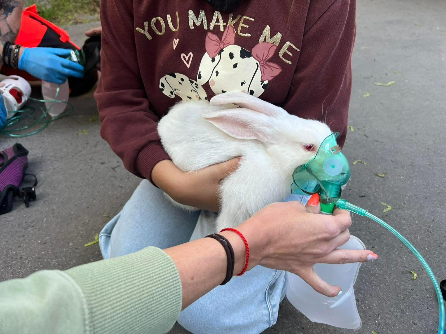 A rémült kutyus és nyuszi a mentők gondoskodásának és az oxigénterápiának köszönhetően hamarosan megnyugodott, állapotuk pedig gyorsan rendeződött.