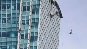 Amerikai sziklamászó Alex Honnold védőfelszerelés nélkül megmászta 101 emeletes felhőkarcolót