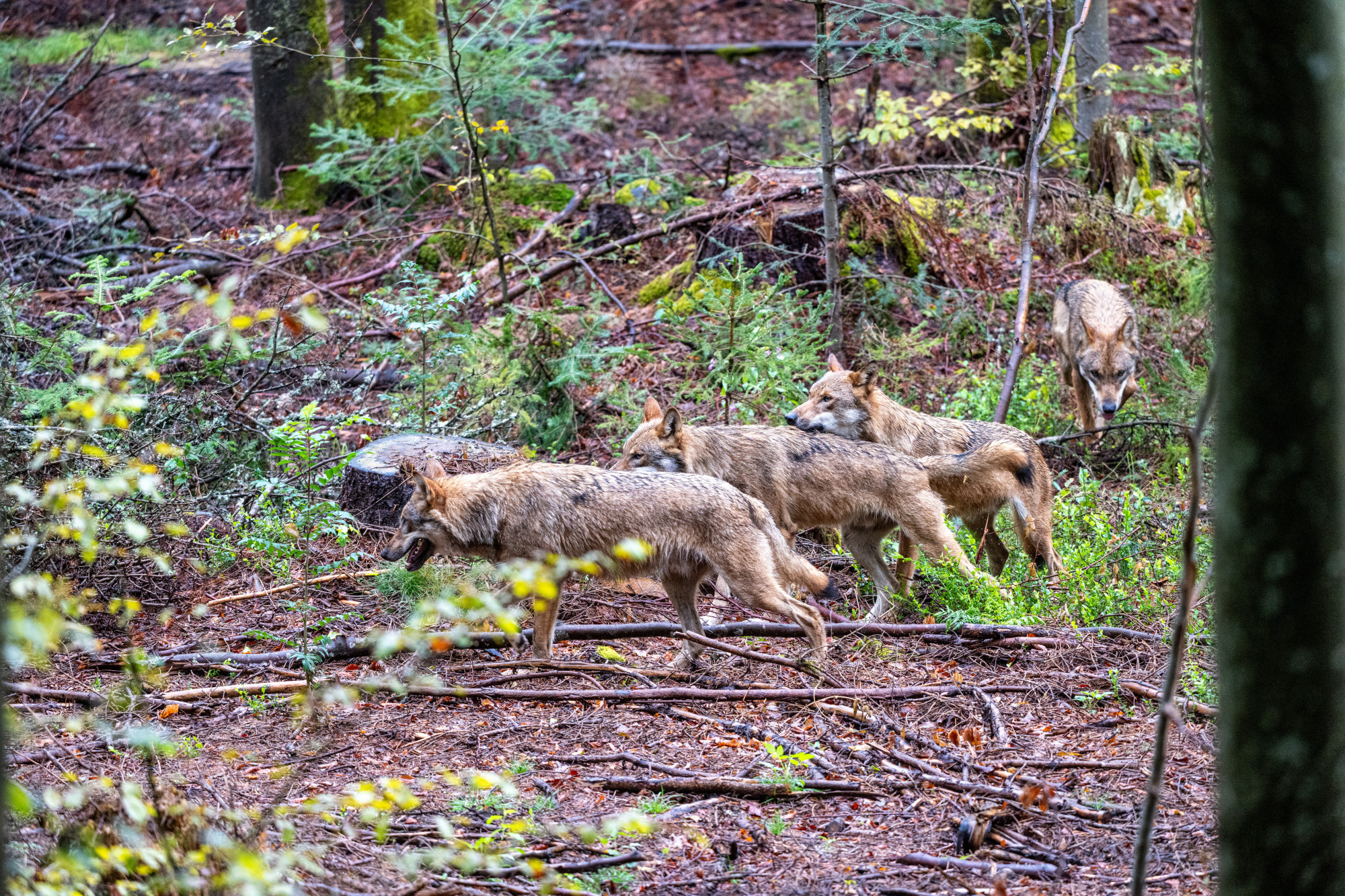 A magányos, nem territoriális nagyragadozóként túlnyomórészt csak saját tapasztalataikra támaszkodó medvékkel szemben a Kárpát-medencében egyre gyakrabban megfigyelt európai szürke farkasok (Canis lupus lupus) olyan heterogén életkorú családi falkákban élnek, amelyek viselkedését az egymás közötti tapasztalatmegosztáson alapuló kollektív cselekvés jellemzi. A WWF ismeretterjesztő kötete szerint a nagyragadozók vadászati stratégiája alkalmazkodik a zsákmányfajhoz, a falka méretéhez, és nem utolsó sorban a helyi környezeti adottságokhoz. Amikor a farkasok prédát keresnek, gyakran szétszóródva, egymással párhuzamosan haladva cserkelnek; nem ritkák az akár három kilométer hosszan elnyúló vadászatok. Előfordul, hogy olyan helyzetbe kényszerítik a prédát – például egy sziklás magaslat szélére, patakmederbe vagy jeges felületre –, amelyből nincs menekvés.