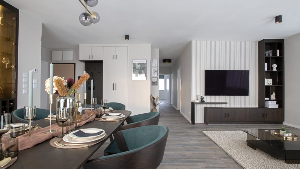 Ebben a gondolkodásban egyre gyakrabban jelenik meg a nappali + 3 szobás elrendezés, mint kompromisszummentes megoldás. Nem túlzó, mégis elég tágas ahhoz, hogy a családtagok ne egymás életterében éljenek. A nappali valóban közösségi tér maradhat, miközben a külön szobák lehetőséget adnak arra, hogy a mindennapok ne folyamatos az alkalmazkodásról szóljanak.
