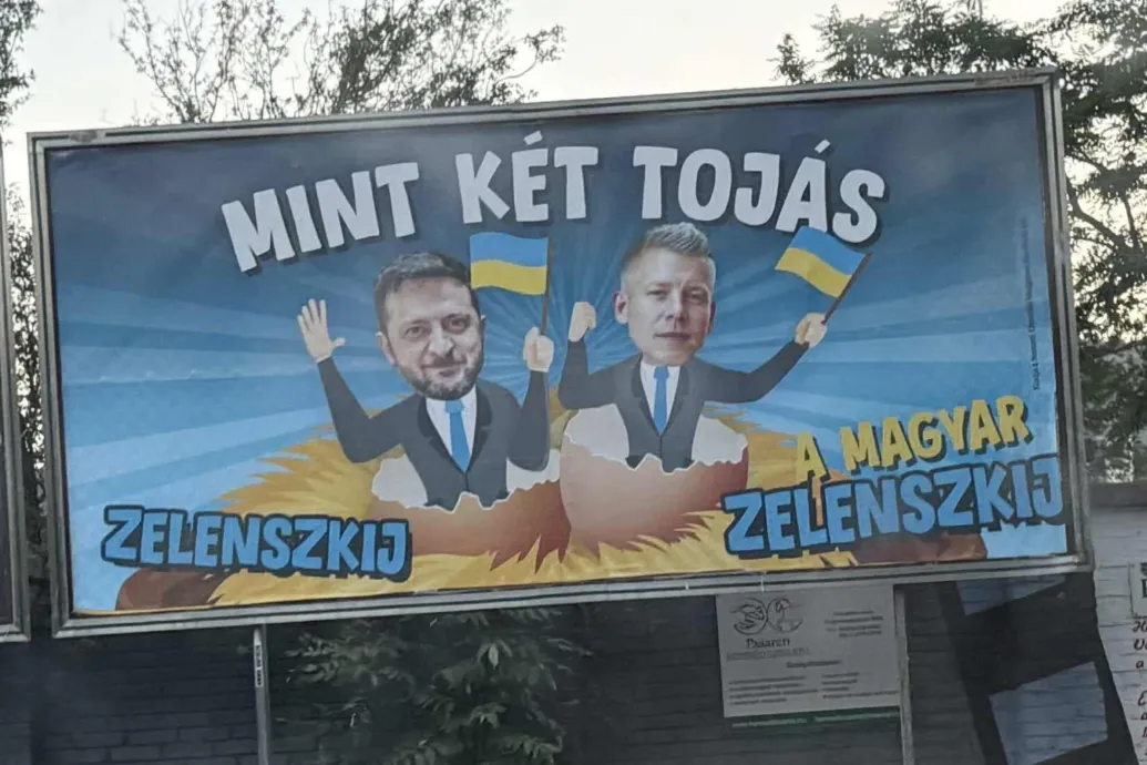 A megafonos Apáti cége az elmúlt hetekben elárasztotta Magyarország utcai plakáthelyeit olyan hirdetésekkel, amelyeken Magyar Péter és Volodimir Zelenszkij szerepel két frissen kikelt fiókaként.