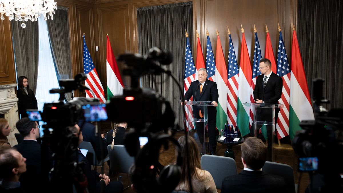 Orbán Viktor miniszterelnök Washingtonban tartott sajtótájékoztatót a Béketanács első ülését követően.