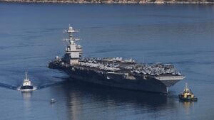 Lerobbant vécékkel tart Irán felé a világ legnagyobb hadihajója