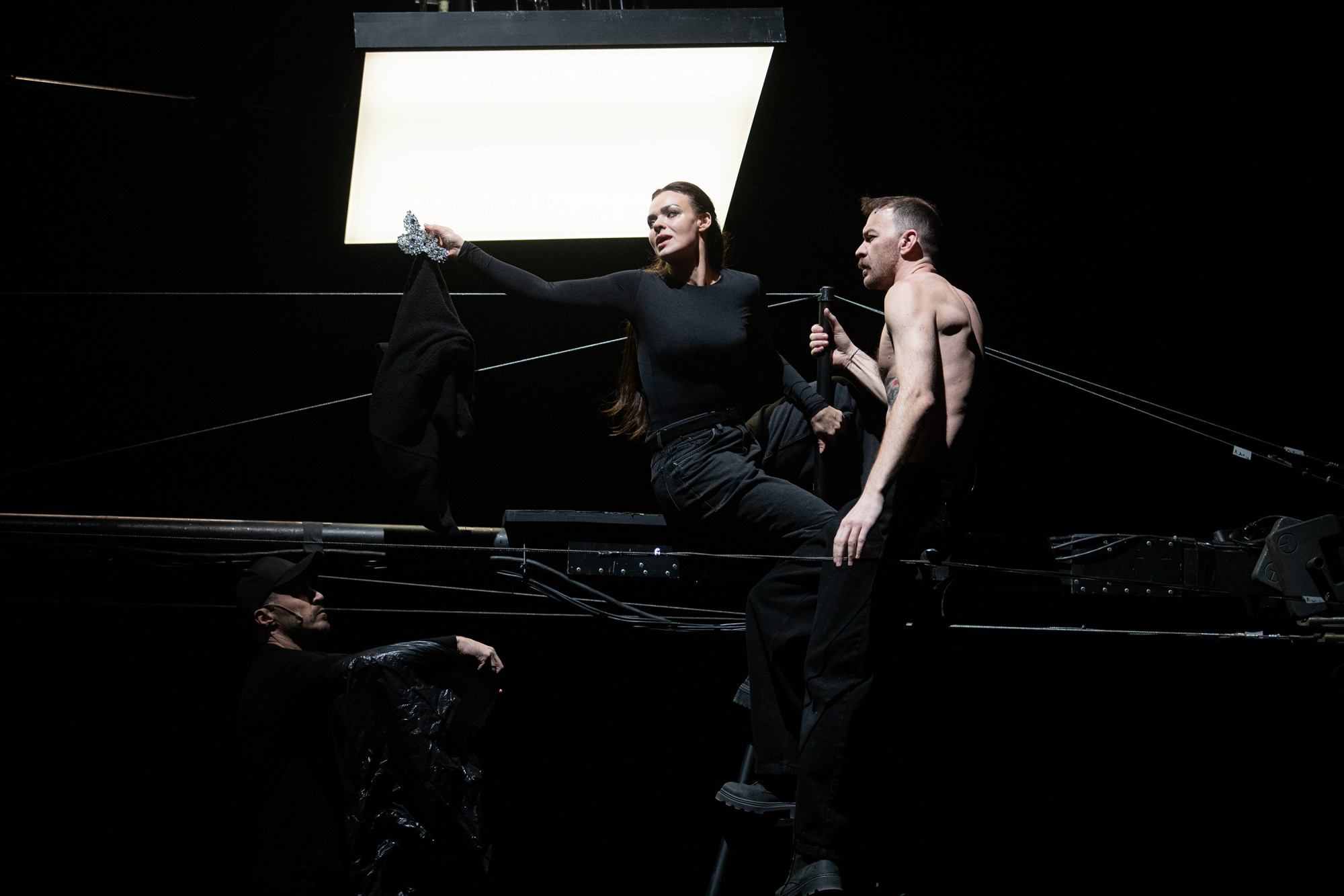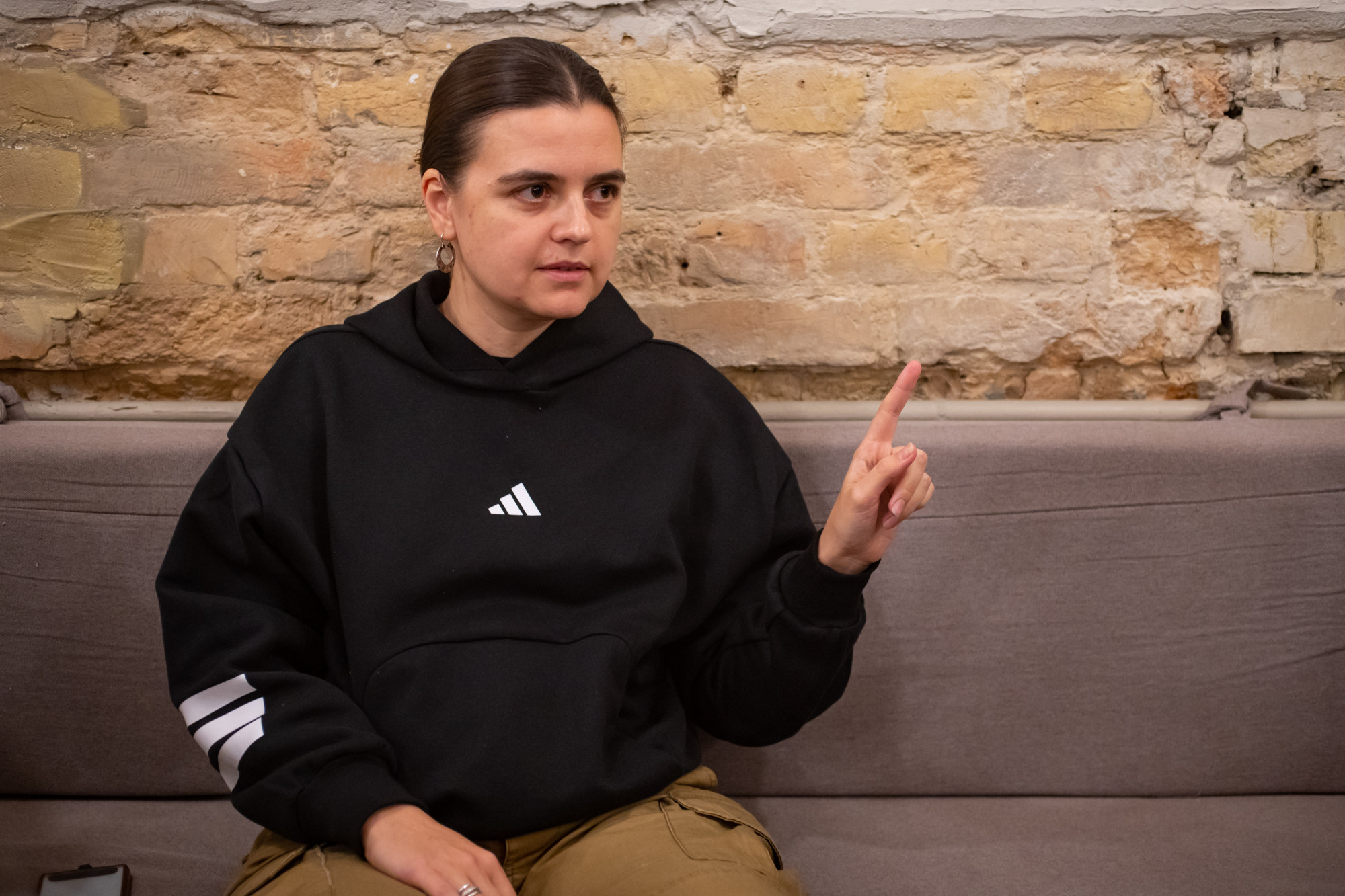 Ninával az előadás előtt és után is van lehetőségünk külön beszélgetni. „A csapatunk egyik tagja ma azért nincs itt, mert a fronton van. Egy normális világban ma velünk lenne. De egy normális világban ez a darab egyáltalán nem született volna meg.” – mondja. Úgy fogalmaz, a háború már nem téma, hanem a valóság, maga az élet, ami már mindenkinek lelkébe, sőt a testébe is beépült. Legyen szó rakéta- és dróntámadásokról, a nap bármely órájában beinduló légvédelmi szirénákról, a protézisekhez való alkalmazkodásról, vagy épp a Telegram-csoportok végeláthatatlan chatfolyamainak görgetéséről, a hatás közvetlenül a testet éri, ennek a megmutatása is volt a céljuk a darabbal.