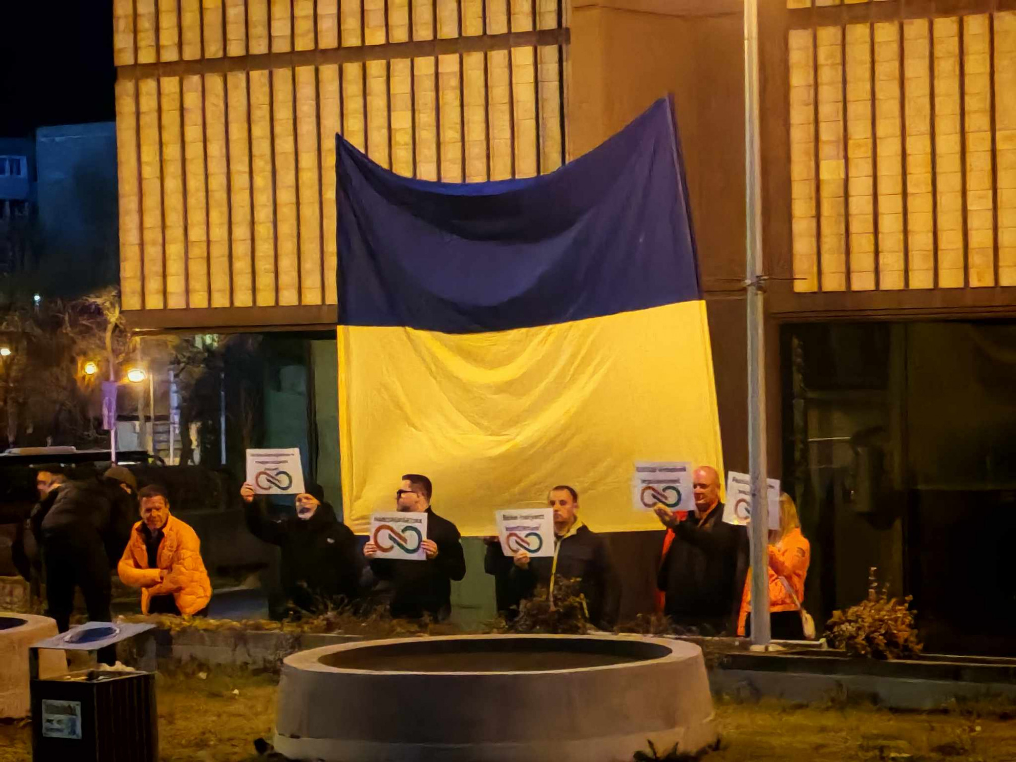 Ukrán zászlóval várta a Fidesz Kapitány Istvánt Salgótarjánban